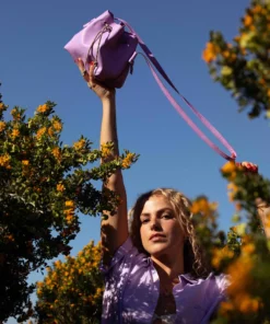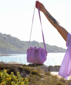 Bucket bag, mini leather bag, lilac color