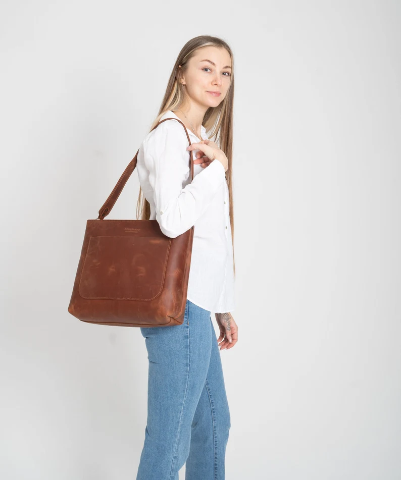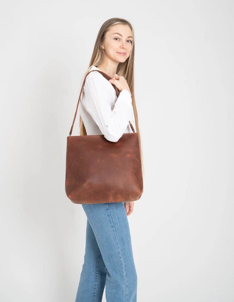 Leather Tote Bag for Women, Leather Shoulder Bag, Handmade Leather Tote