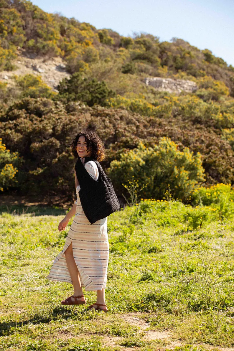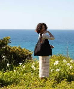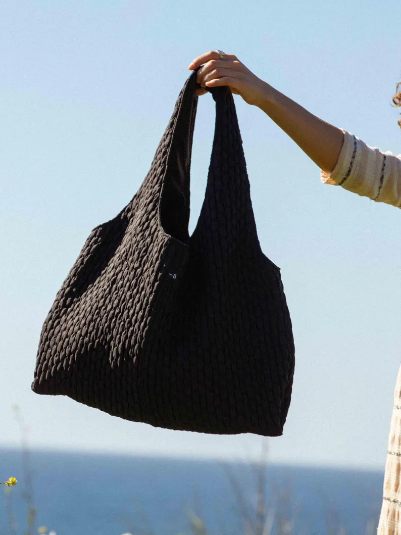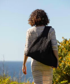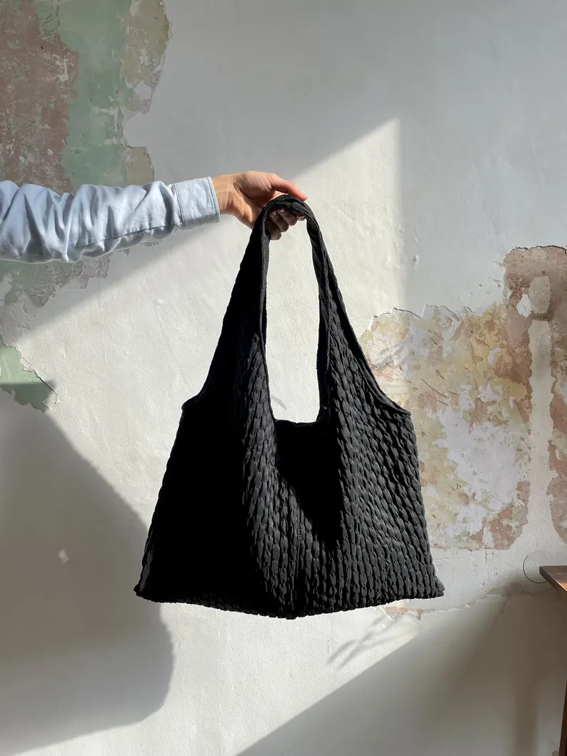 Marthe tote bag – black smocked fabric