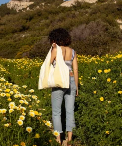 The Marthe tote bag with an upcycled feel. Easy to carry, it’s lightweight, practical, and chic. Each model is unique, or available in mini editions.