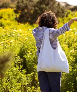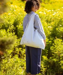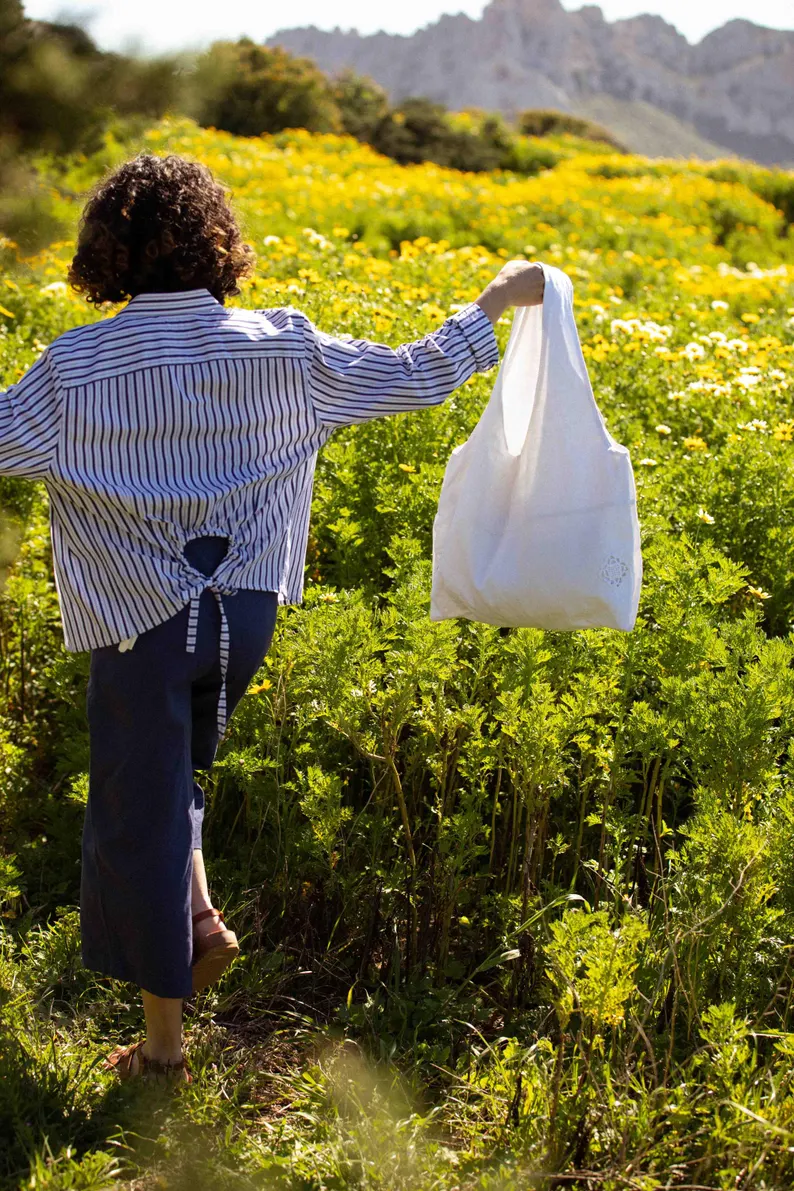 The Marthe tote bag with an upcycled feel. Easy to carry, it’s lightweight, practical, and chic. Each model is unique, or available in mini editions.