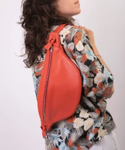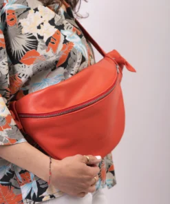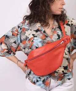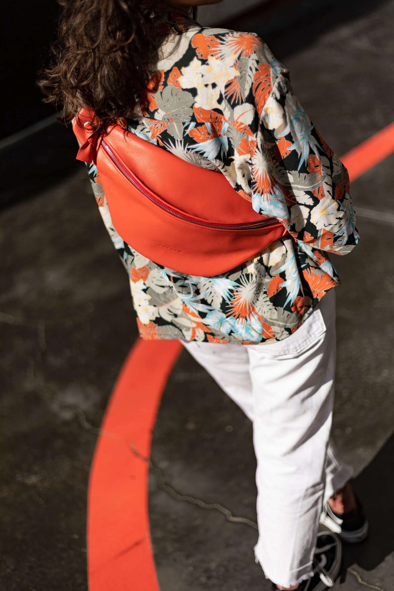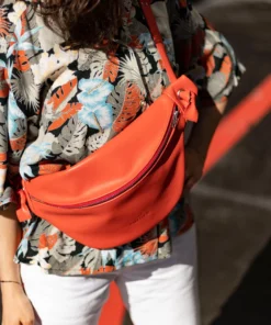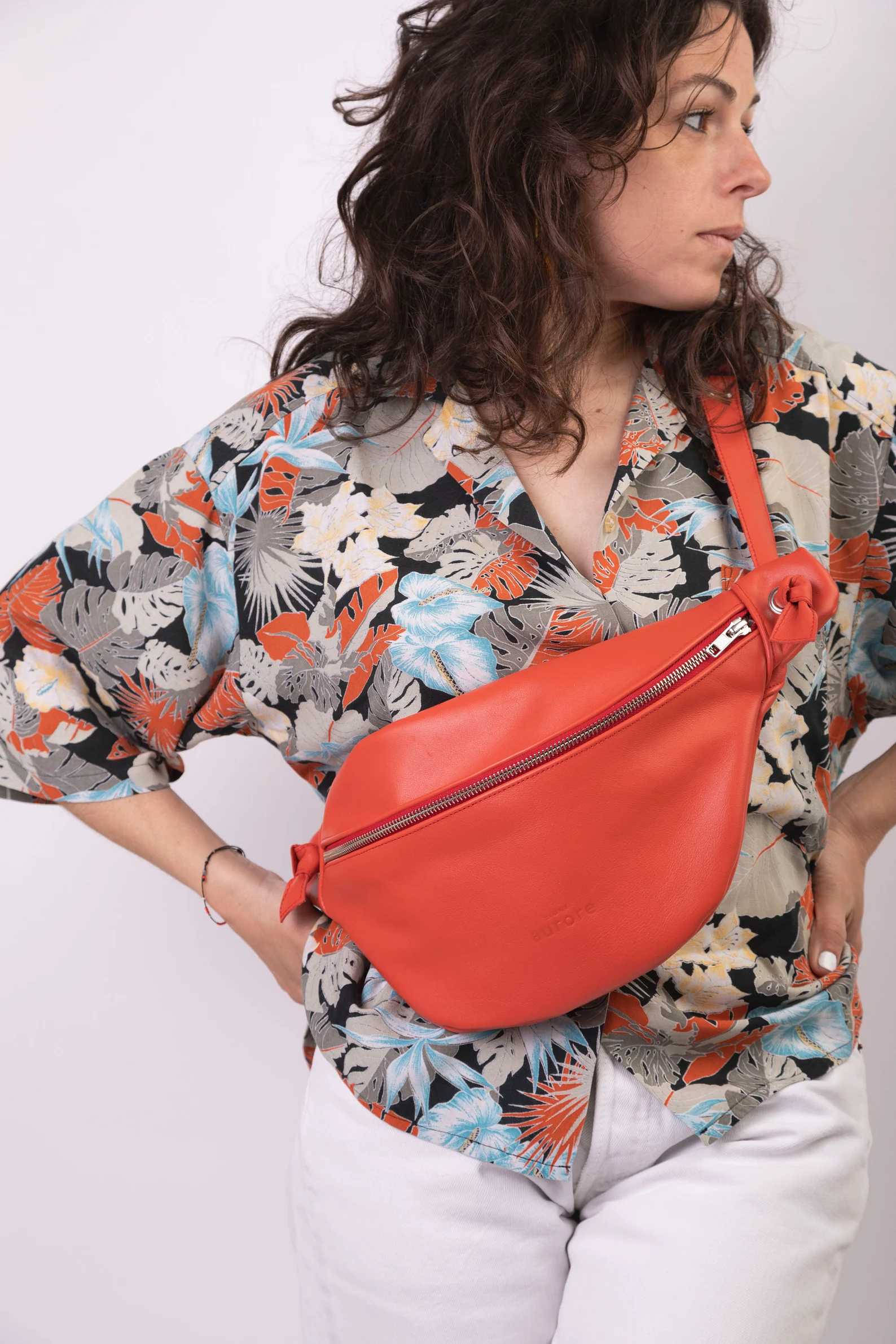 XL banana bag, chest bag, Poppy-coloured cowhide leather