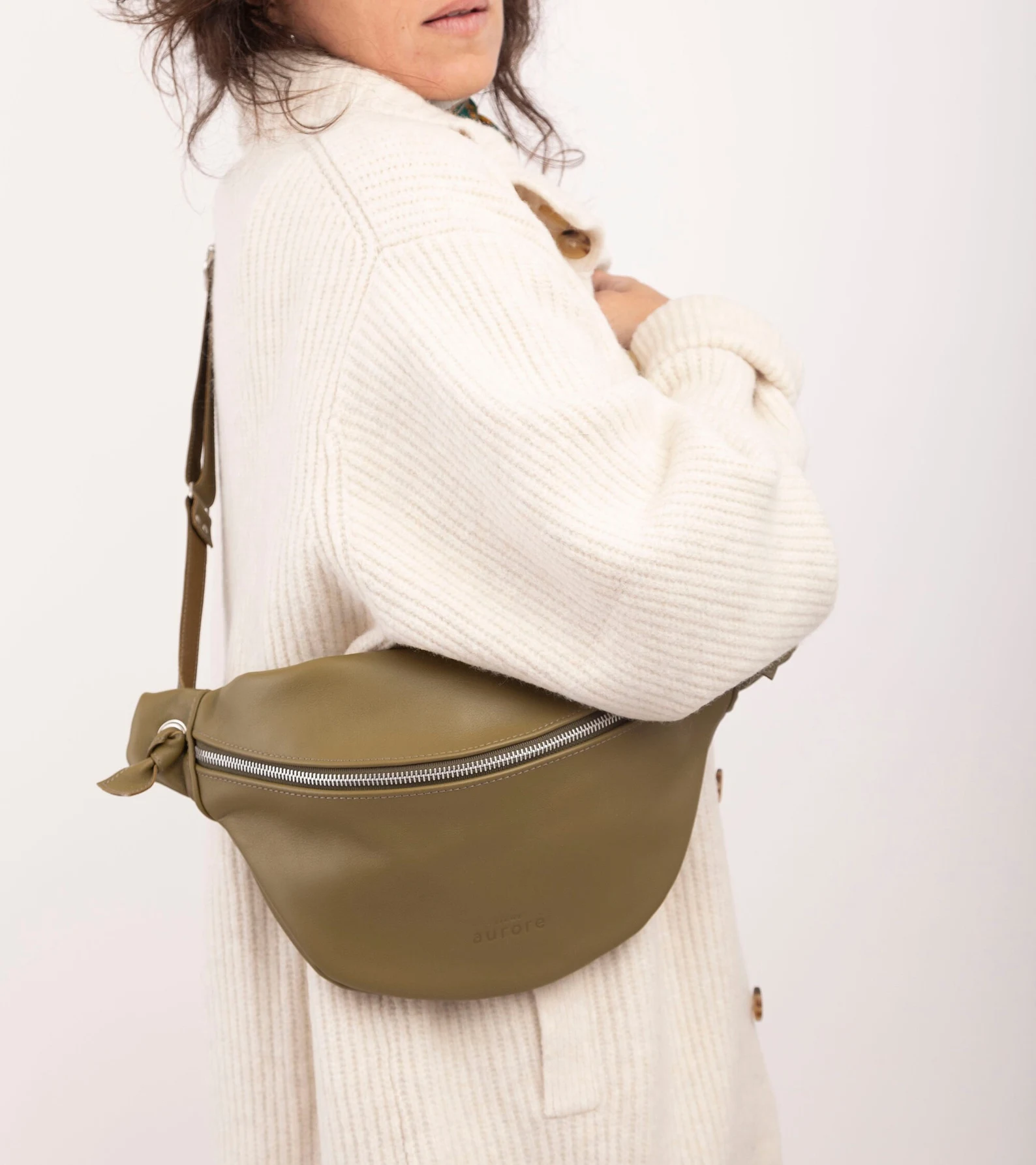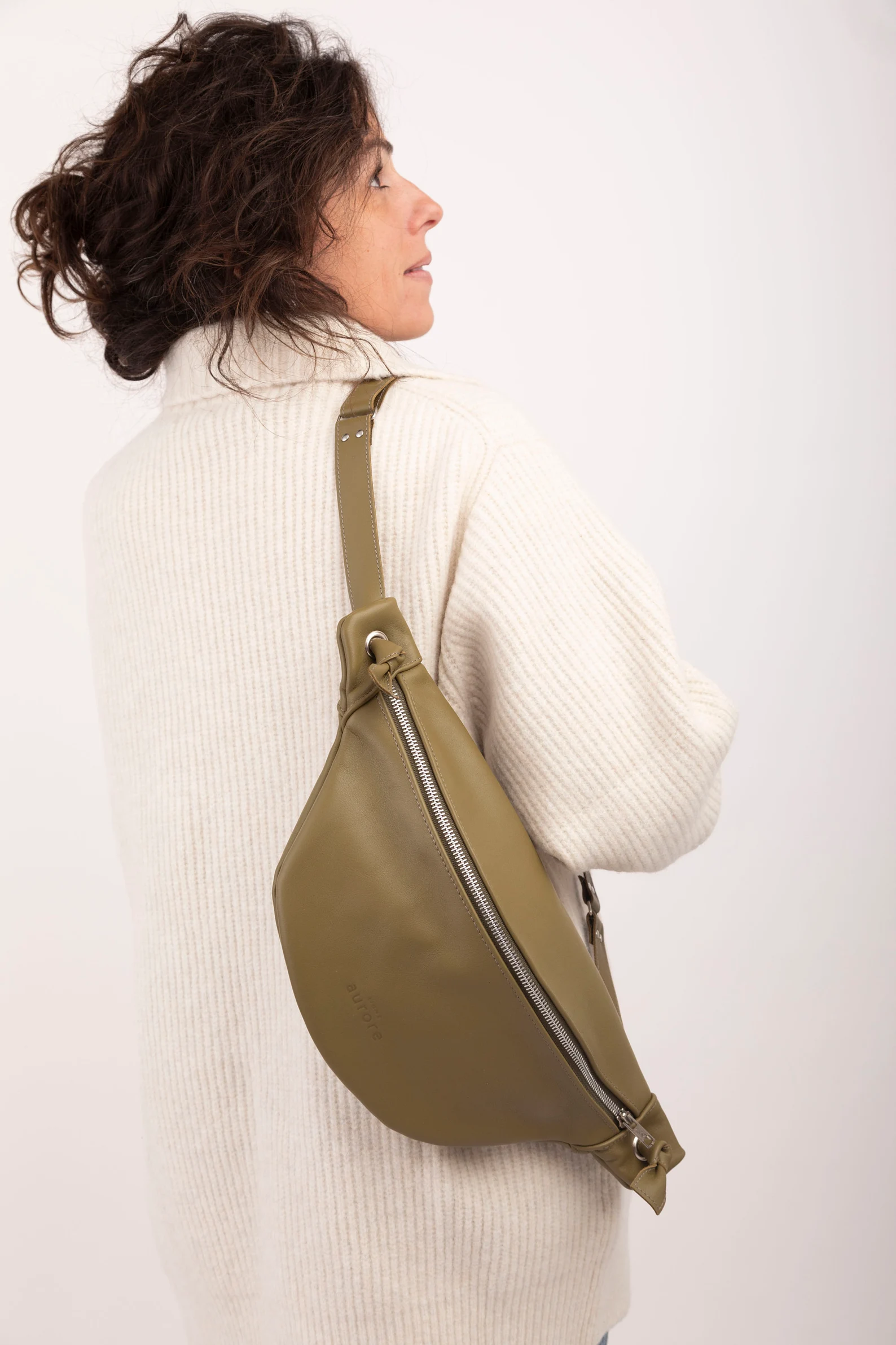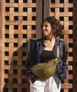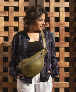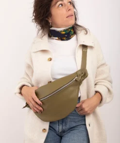 XL fanny pack, chest bag, khaki leather